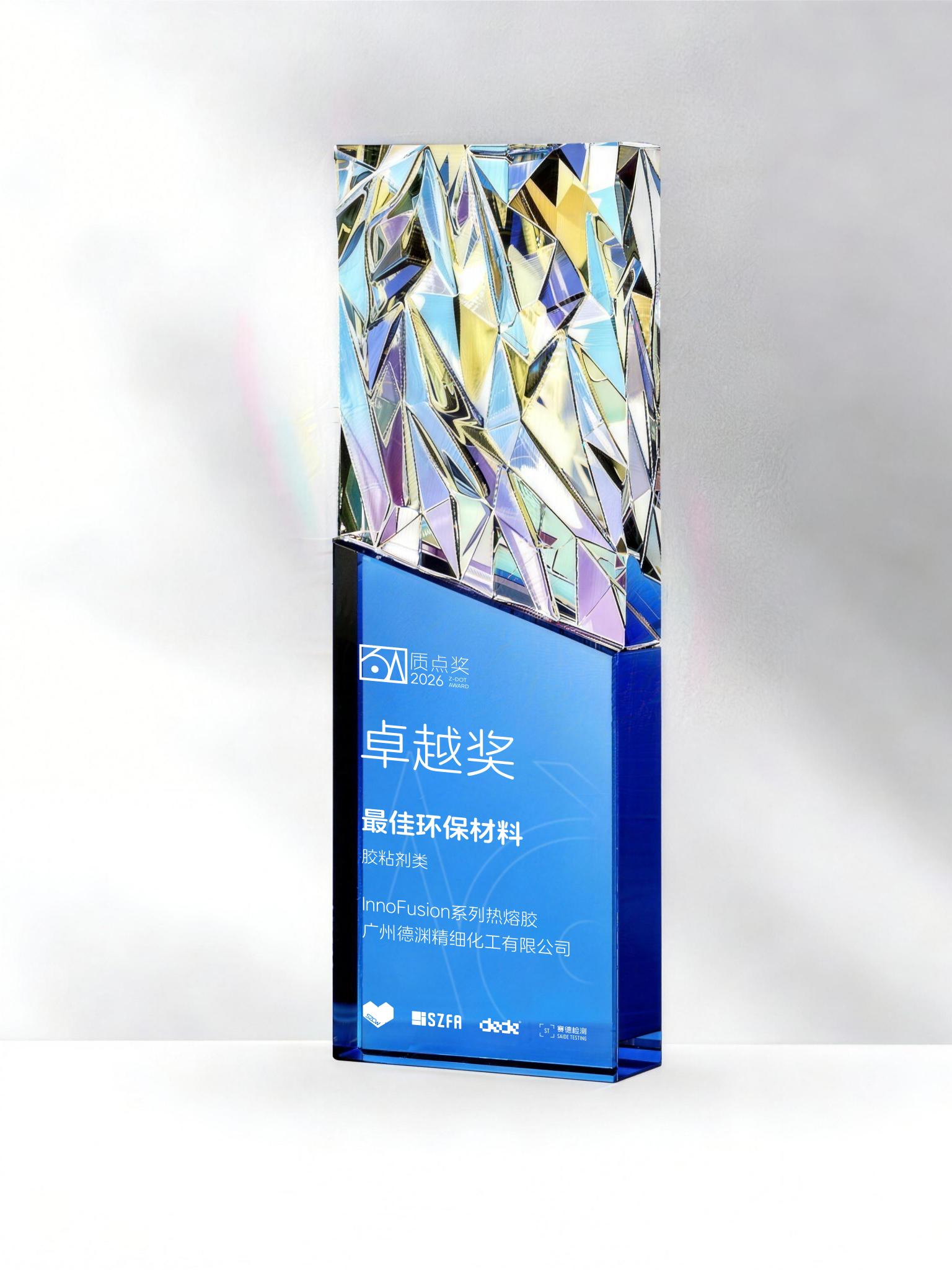 获深圳家具行业协会2026年质点奖, 凭Innofusion系列热熔胶, 摘得最佳环保材料-胶粘剂类卓越奖, 是本届唯一入围的胶粘剂企业!
