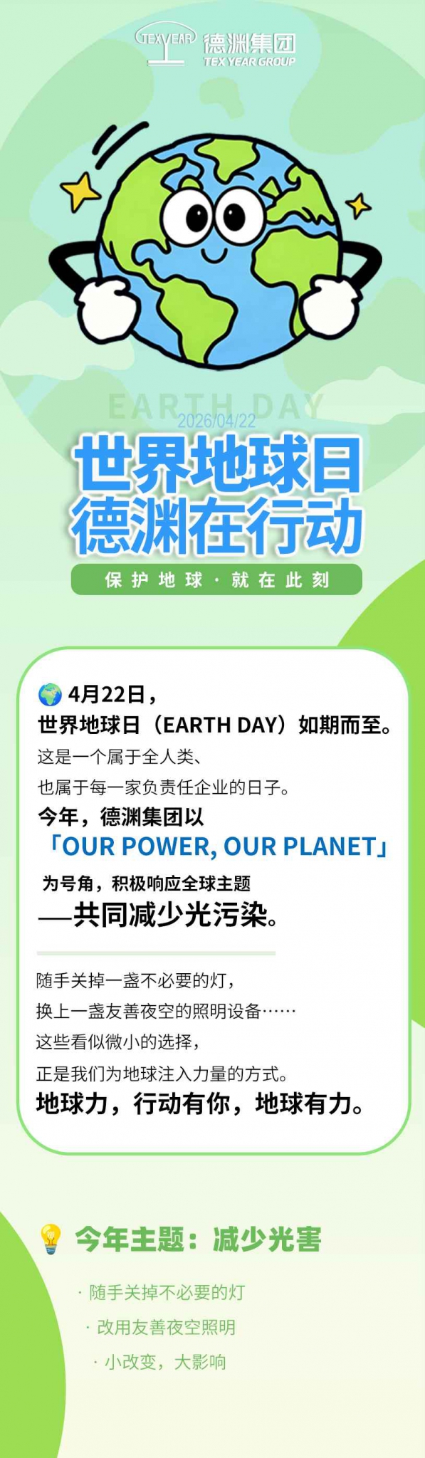 今年,德渊集团以TOUR POWER, OUR PLANET为号角,积极响应全球主题-共同减少光污染。